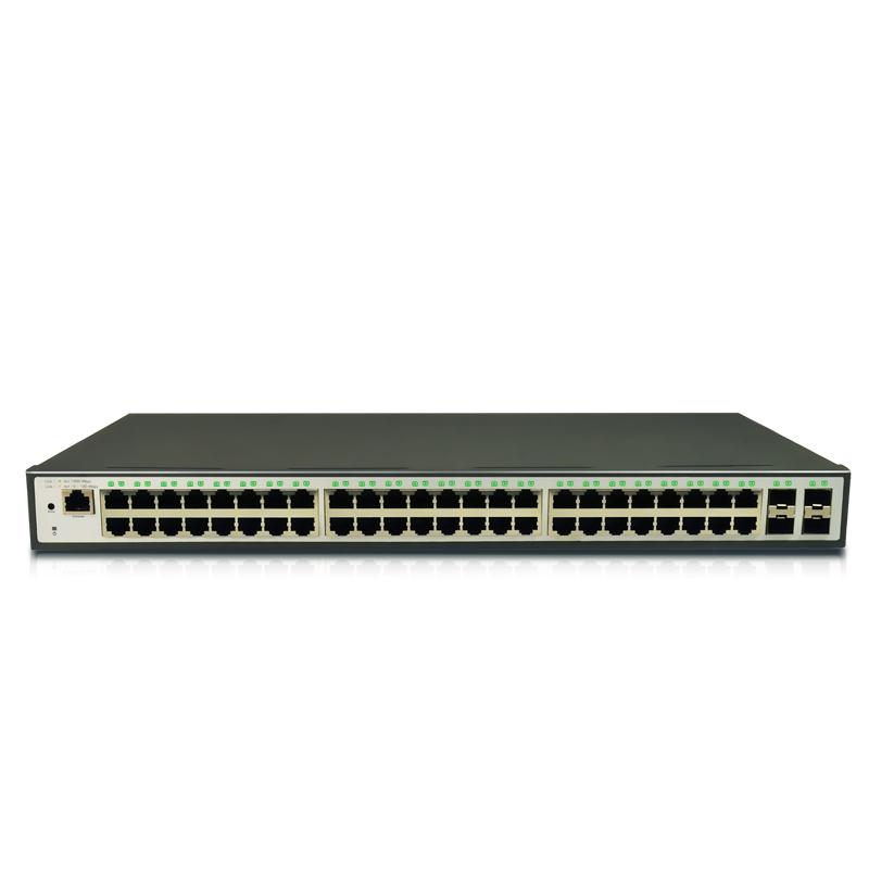 | standard configuration | 48 10/100/1000M RJ-45 MDI/MDI-X ports, 4 10G SFP ports+1 console port |